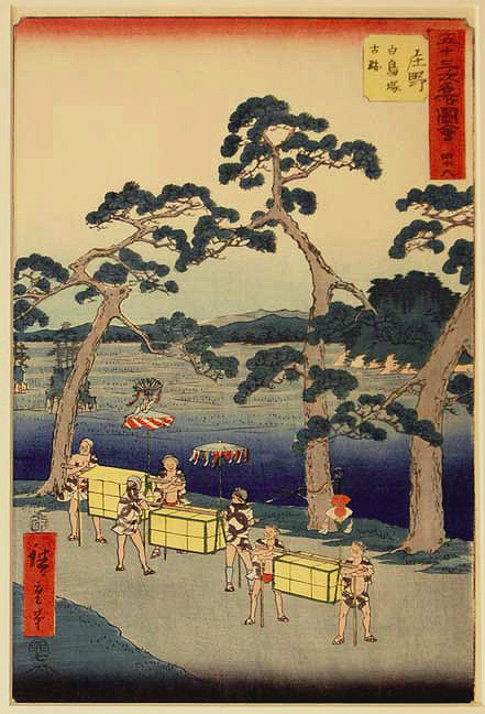 by Hiroshige I (1797-1858), an original ukiyoe print, from the Vertical Tokaido series,
