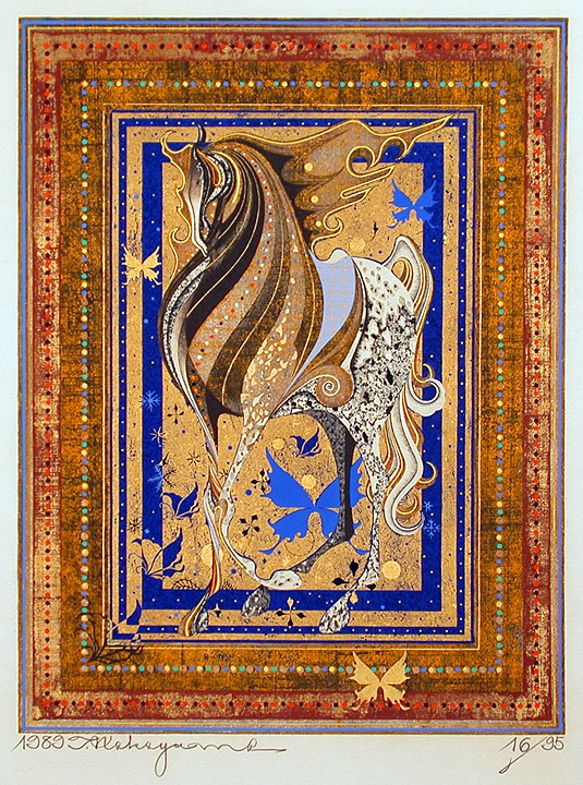“Blue Ema” by Tadashi Nakayama, an original woodblock print, signed and numbered in pencil.