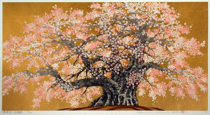 Higan Sakura Cherry Tree by Hajime Namiki Original wooodblock print, signed and numbered in pencil. Edition of 200 2001 Image size: 14 1/2 x 27 1/8 in. Pristine condition This Print is in the Collection of the Art Institute of Chicago