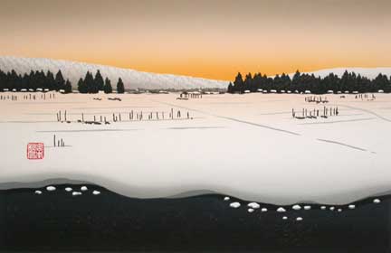 Snow Field by Shufu Miyamoto An original wooodblock print, signed in pencil Edition of 200, 2002 Image size: 11 1/4" x 17"