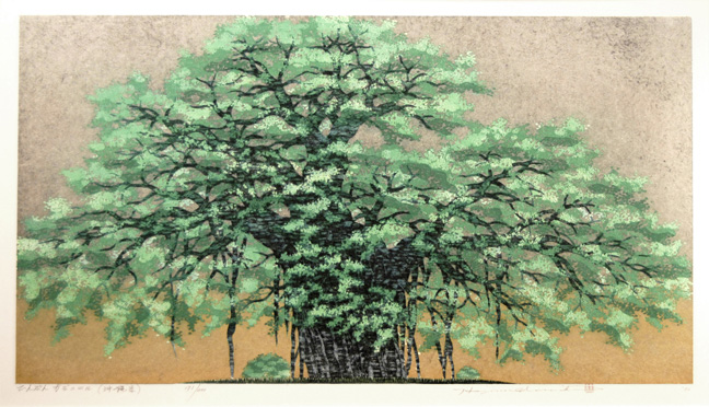 Gajumal Tree by Hajime Namiki Original wooodblock print, signed and numbered in pencil Edition of 200 2002 Image size: 15 3/4 x 28 in. Pristine condition