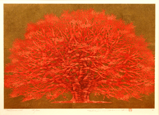 Tree Scene 108 by Hajime Namiki Original wooodblock print, signed and numbered in pencil Edition of 200 2002 Image size: 10 5/8 x 15 1/4 in. Pristine condition THIS PRINT WAS SOLD OUT BY THE ARTIST IN 2008