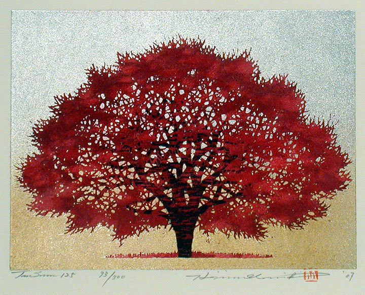 Multicolored Red, (Multicolored Red Tree #125), by Hajime Namiki, an original woodblock print, signed and numbered in Pencil. Edition of 300. 2007 Image size: 4 3/4 in. x 6 1/4 in. Pristine